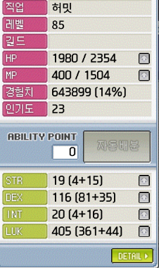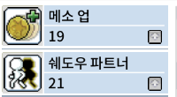 70->77 쉐파 21 -> 1~10랩 지속시간 1분, 11~20랩 지속시간 2분, 21~30랩 지속시간 3분 저게 스킬한번당 5천메소 나가는데 지속시간이 핵심이라 저렇게 찍고(허밋의 시그니처는 뭐니뭐니해도 쉐파고 낭만스킬이니깐) 최대효율만 본 뒤 메소업을 찍음(그지라 돈이 없으므로 ㄹㅇ 돈벌이용)