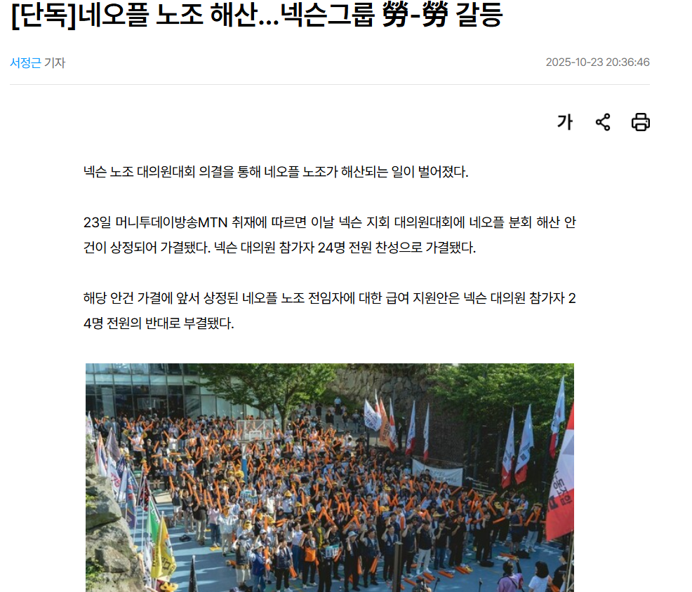 [잡담] 속보) 네오플 노조 해산 |