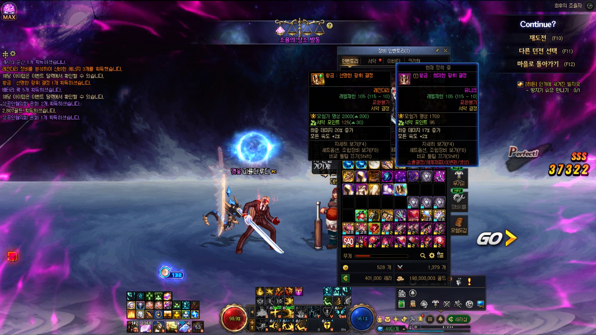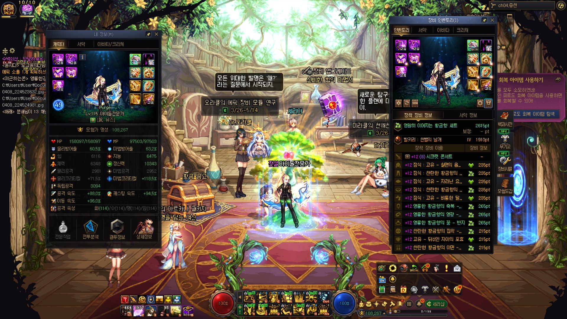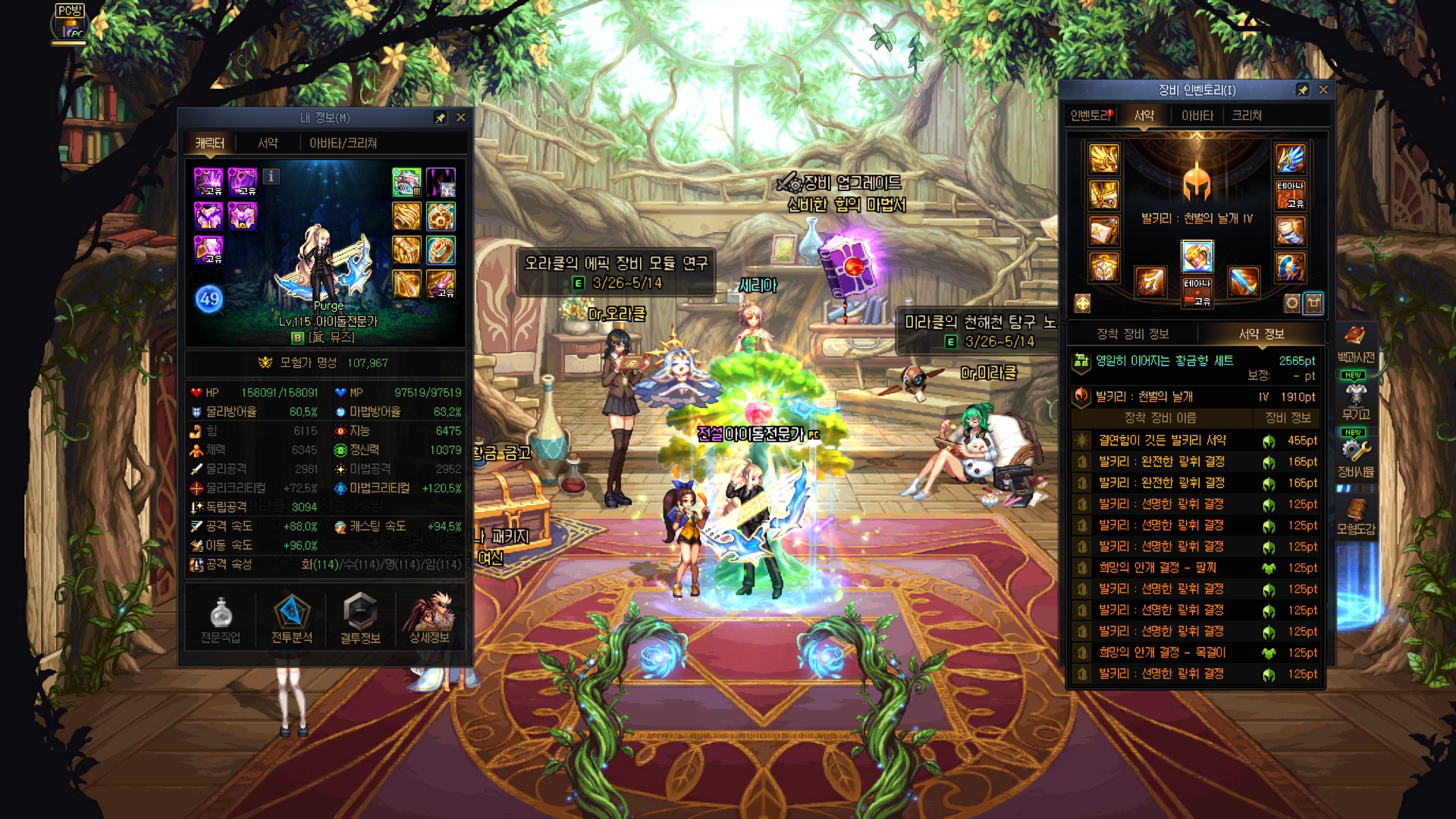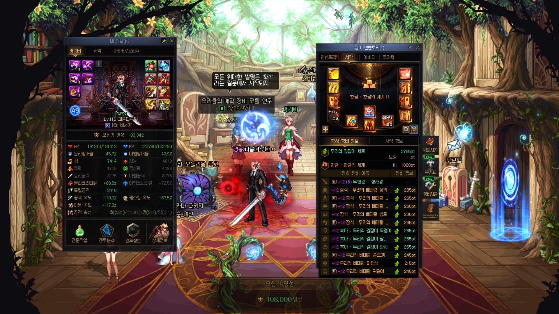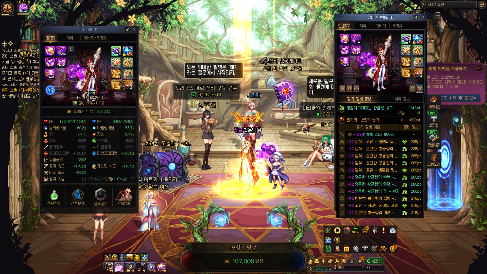 수라가 오늘 스펙업 미친듯이 잘 돼버렸네요....; 레전->에픽서약, 유닉->에픽결정 그냥 미친 스펙펌핑 ㅋㅋㅋㅋㅋㅋㅋㅋㅋㅋㅋㅋㅋㅋㅋㅋ 유닉 저울에서 유효타가 크게 터져줄 줄이야... 근데 그 이후에 깐 에픽저울 3개가 조져진건 좀 많이 유감스러운 부분 4번째로 명성 11만 돌파했네요 11만을 넘어 11.1만까지 돌파했다만